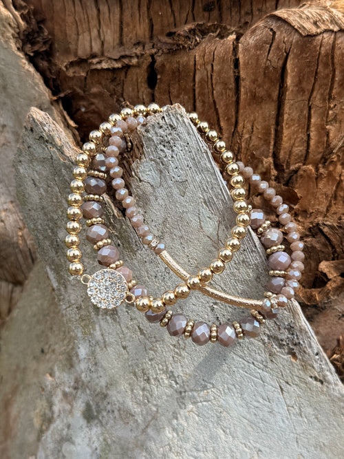 Pearls & Antique Gold Tube Beaded Bracelet Set -